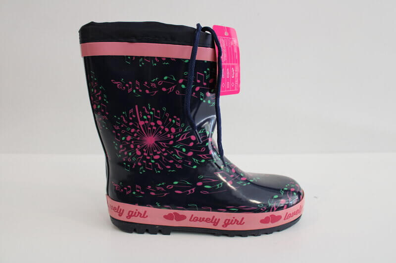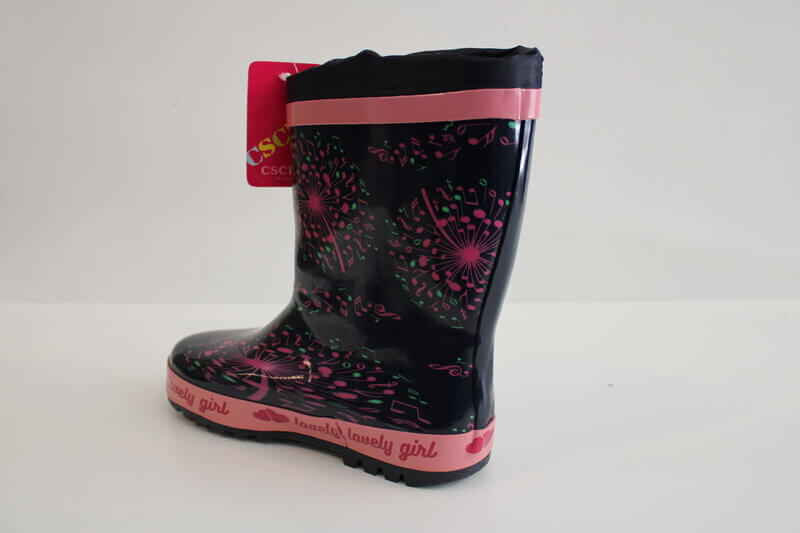 Nepremočljiv gumijast škorenj, za brezskrbno skakanje po lužah. Škorenj ni podložen.