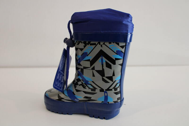 Otroški gumijasti škorenj krasnega dizajna, nepremočljiv.Notranjost  škornja ni podložena.