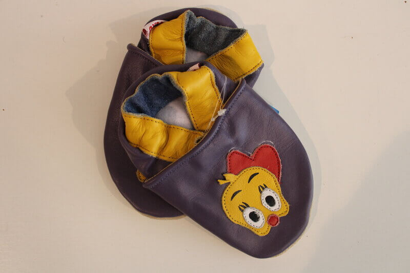 Usnjeni copati, nedrseči in zelo mehki. Izdelani so v Sloveniji.